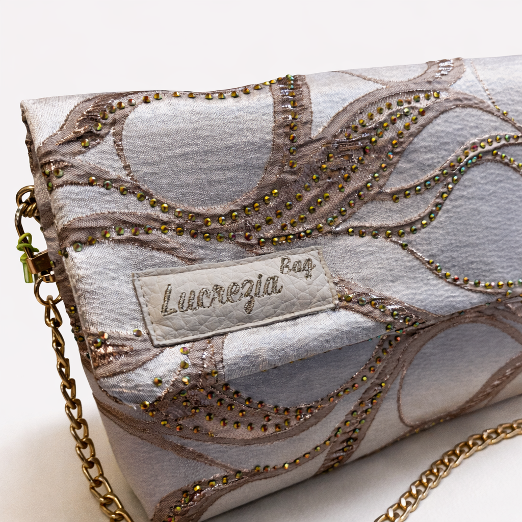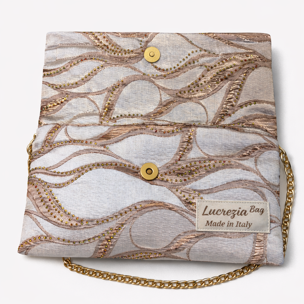 La Pochette con patta “Lucrezia Bag” n. 319, della collezione “Luxury”, è un accessorio prezioso che esprime luce, raffinatezza e carattere contemporaneo.